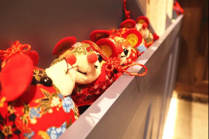 四周有青翠植物、各色花卉再入屋内几张展示柜上,具有永泰特色的蜜饯、藤编年味浓浓的“鼠”笔记、“鼠”玩偶一一陈列。