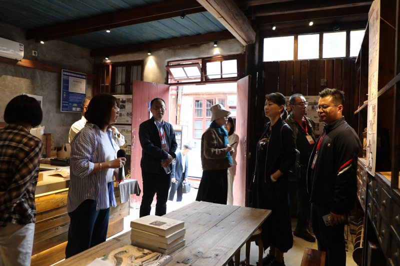沿着嵩口古巷道,专家学者一行先后探访了民俗博物馆、嵩口供销新社、青藤苑、嵩口法庭旧址、公益图书馆等地,在领略古镇风光,品味传统文化的同时,共同分享着对古镇文化保护传承与开发利用的见解和建议。