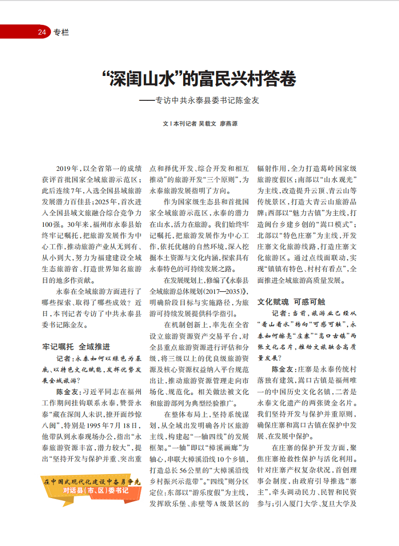 《“深闺山水”的富民兴村答卷——专访中共永泰县委书记陈金友》