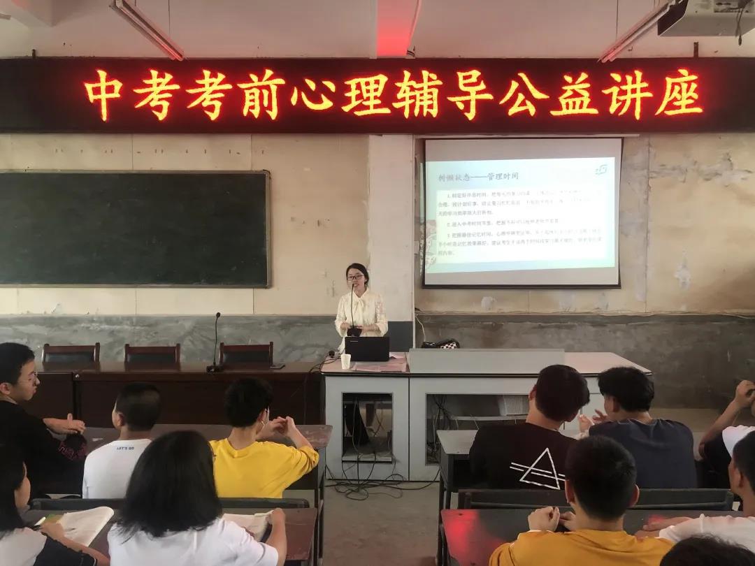 中考考前心理健康讲座由县未成年人心理健康辅导站国家二级心理咨询师、县教师进修学校心理健康教育教研员林羽主讲,主题为《轻松备考 助力中考》。