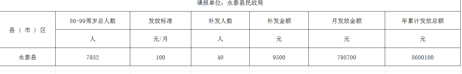 永泰县高龄补贴发放进度表(2025年10月)